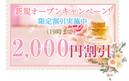 - 新規オープンキャンペーン!限定割引実施中(19時まで)2,000円割引
