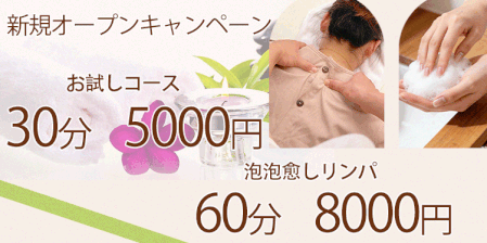 - 新規オープンキャンペーン お試しコース30分5000円