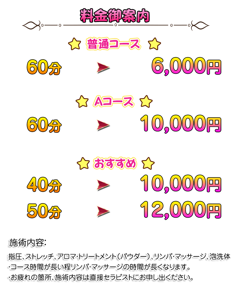お客様一人ひとりのご要望にお応えするため、容姿・接客・技術のすべてにおいて厳選されたセラピストが在籍。高品質な施術を限界価格でご提供いたします。