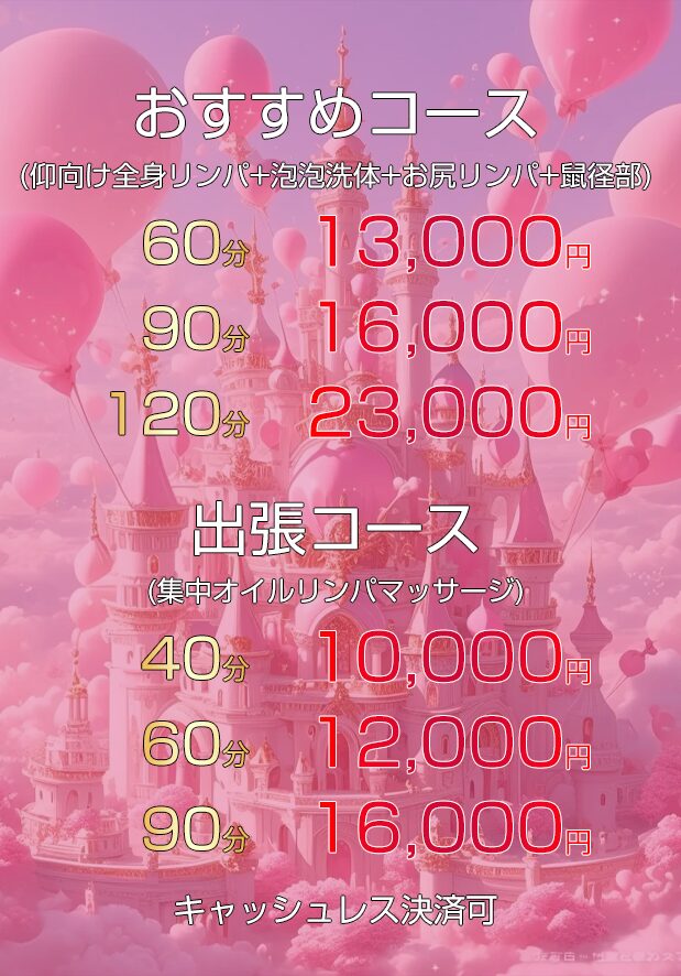 当店のマッサージは、心身の緊張を和らげ、眠っていた自然治癒力を回復させることで、ストレスや疲労を改善し、快眠と翌朝の爽やかな目覚めを促し、生活や仕事の充実をサポートいたしますので、ぜひ甘く優雅な癒しの時間をお過ごしください。