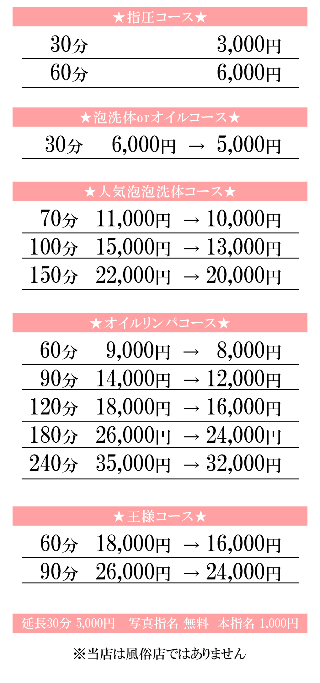 当店は毎日頑張って仕事に打ち込む男性の皆様へ癒しのスペシャリストをご案内いたします。 在籍女性は20代~40代まで幅広く在籍しております。ビジュアルや施術力等、ご要望があれば、是非、お気軽にお聞かせ下さい。 正直な対応で皆様からの信用を積み上げてまいります。