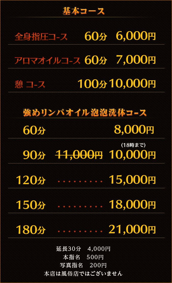 - 特別キャンペーン 18時まで 強めリンパオイル泡泡洗体コース