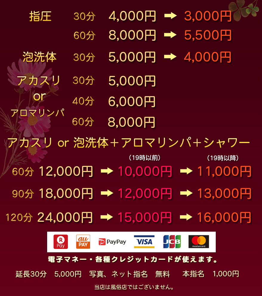 アカスリとアロマリンパのコースやってもらいました。メンズエステでは珍しいアカスリあったのでお試しでしたがとても気持ちよく大変満足でした。会話も楽しくあっという間に時間来て30分延長しました。月に1回浅草に出張で来るので又お邪魔します。