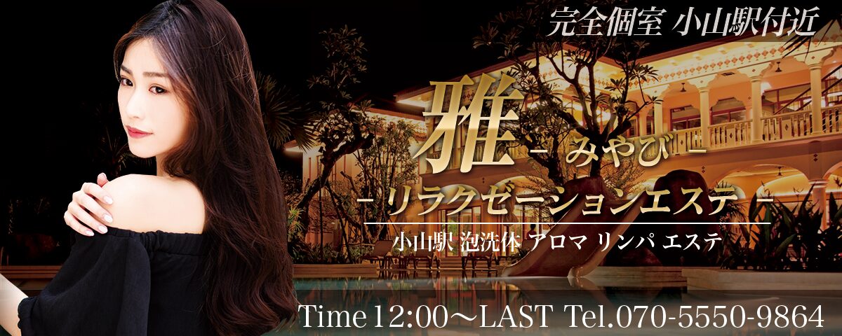 栃木 小山駅近くにあるリラクゼーション「雅(みやび)」がNewOpen!ご来店を待ちしております。 当店では、毎日元気なセラピストが出勤しています。来店後お待たせすることなく、ご案内させていただきますので、ご予約のお電話をお待ちしております。