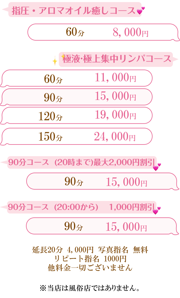 - キャンペーン7月末までも 90分コース(20時まで) 最大2,000円割引