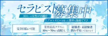 「歩合率50〜70%以上も可能」「最低保障」「高収入」お客様ののカラダとココロを癒しがそのまま反映され高収入に繋がります!募集要項