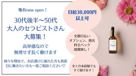 20代歓迎 30代歓迎 未経験歓迎 経験優遇只今、セラピスト大募集!!
